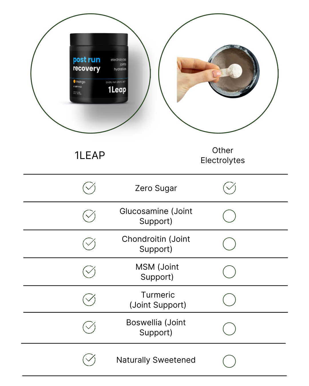 What started as a search for something to support our own running journey became a mission—to create a formula that didn’t exist yet. One that combined hydration, recovery, and joint support in a single scoop. From that idea came 1LEAP Joint Support Infused Electrolytes.